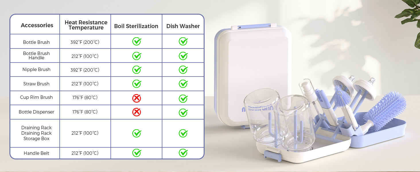 Easily detach and store each brush with the magnetic attachment, keeping your countertop organized and saving space. The removable design ensures every part dries quickly and stays hygienic, making daily cleaning effortless for busy parents.