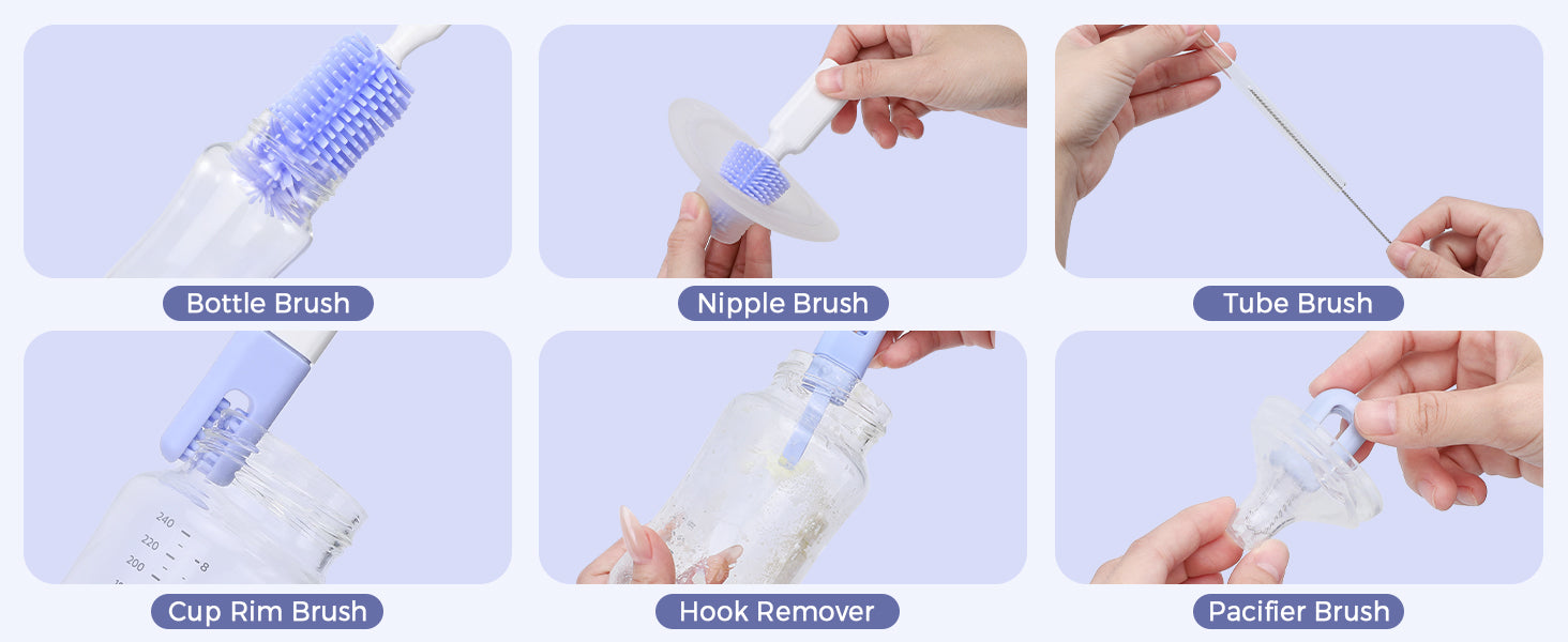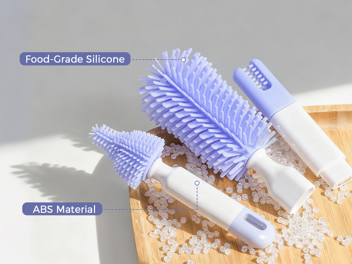 Made with food-grade silicone and BPA-free ABS plastic, each brush is gentle on baby bottles, nipples, and pump parts while ensuring long-lasting durability. Safe for daily use and easy to clean, giving parents peace of mind with every wash.